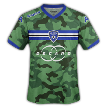 Comme la saison dernière, Kappa a conçu un maillot camouflage pour le troisième maillot third Bastia 2015. Le maillot camouflage SC Bastia 2014-2015 third dispose d’une bande horizontale bleue, blanche et noire sur le torse du troisième maillot de foot Bastia 14-15 . Le col bleu et les détails bleus aux manches complètent la conception de la tenue de Bastia 14-15 extérieur. Le short est vert foncé.