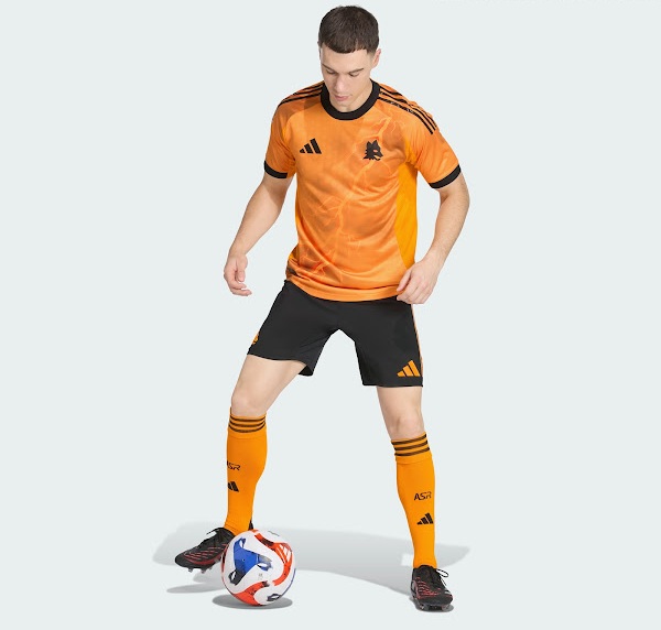 Pour la saison 2025-2026, l’AS Roma dévoile un maillot extérieur audacieux signé Adidas, qui rompt avec les traditions en adoptant une teinte orange éclatante comme couleur principale. Longtemps réservée aux troisièmes maillots du club dans les années 2000, cette couleur fait ici sa toute première apparition sur une tenue extérieure officielle des Giallorossi.